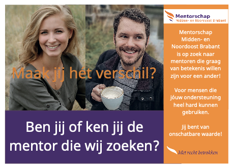 Voor zowel de naamsbekendheid en de werving van nieuwe mentoren zouden we ook dolgraag een beroep doen op ieders individuele netwerk. Als we namelijk de krachten bundelen kunnen we sneller tot meer samenwerking komen met nieuwe mentoren. Bovendien kunnen kwetsbare mensen ons gemakkelijker vinden en een beroep doen op onze dienstverlening.